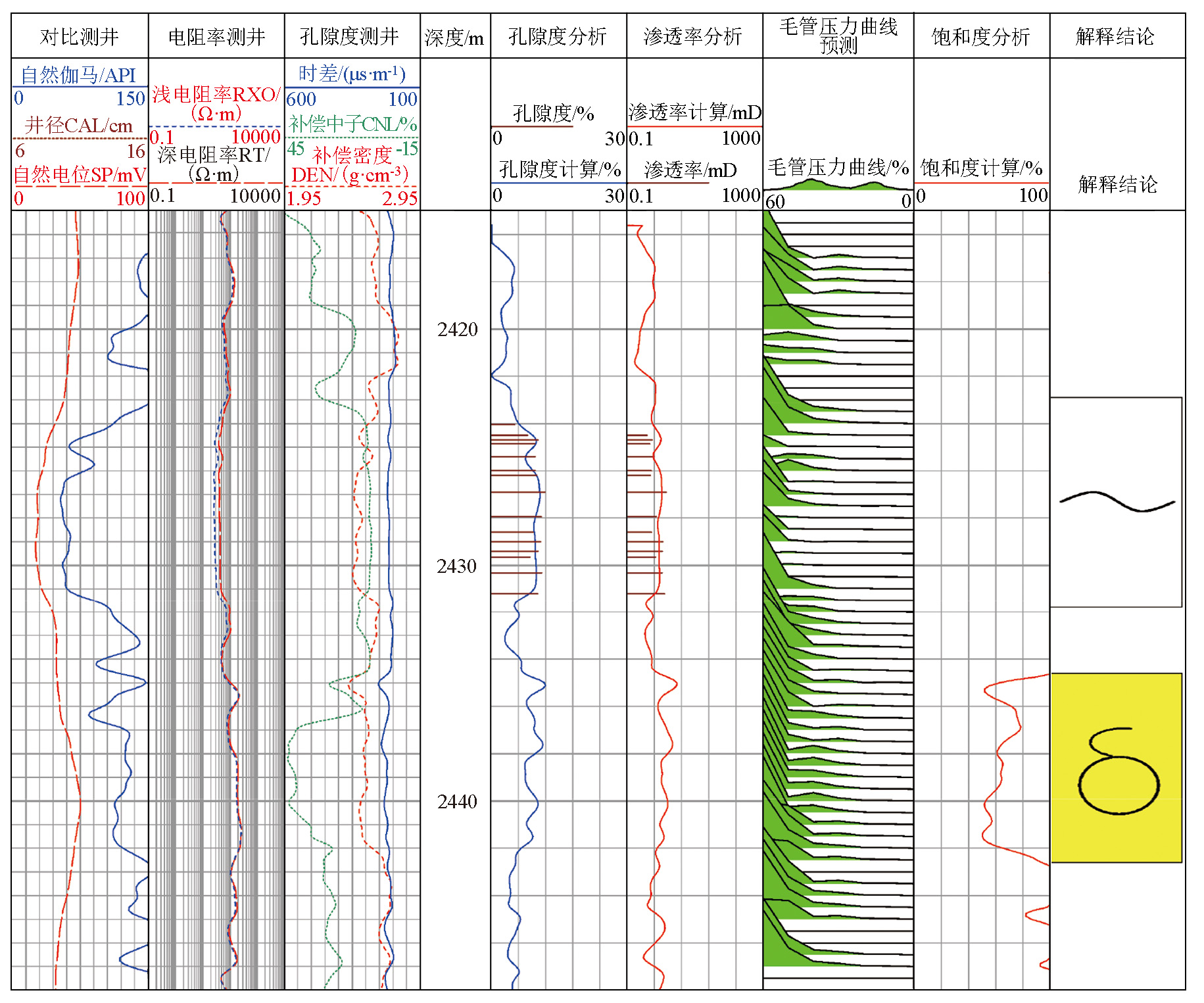 | 图7 毛管压力曲线预测应用实例X37-2C1井 |