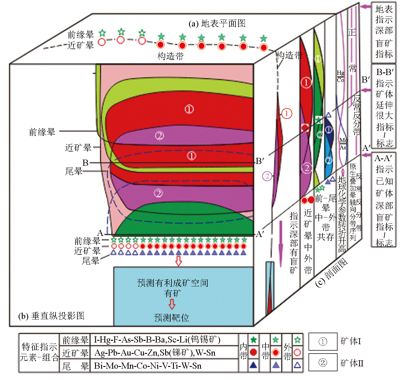 | Fig.1 Vertical projection of a practical ideal model of structural superimposed halo for prediction of deep blind deposits in hydrothermal deposits |