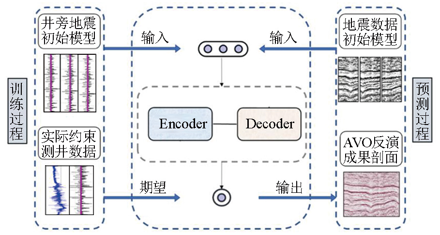 | Fig.1 Pre-stack inversion training and prediction flow of quadratic Encoder-Decoder network |