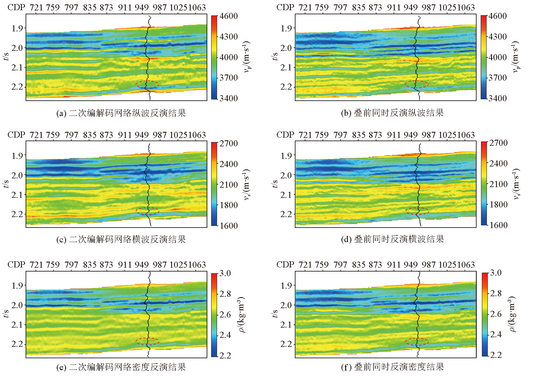 | Fig.7 Results of quadratic Encoder-Decoder network and conventional prestack inversion through Te2 well |