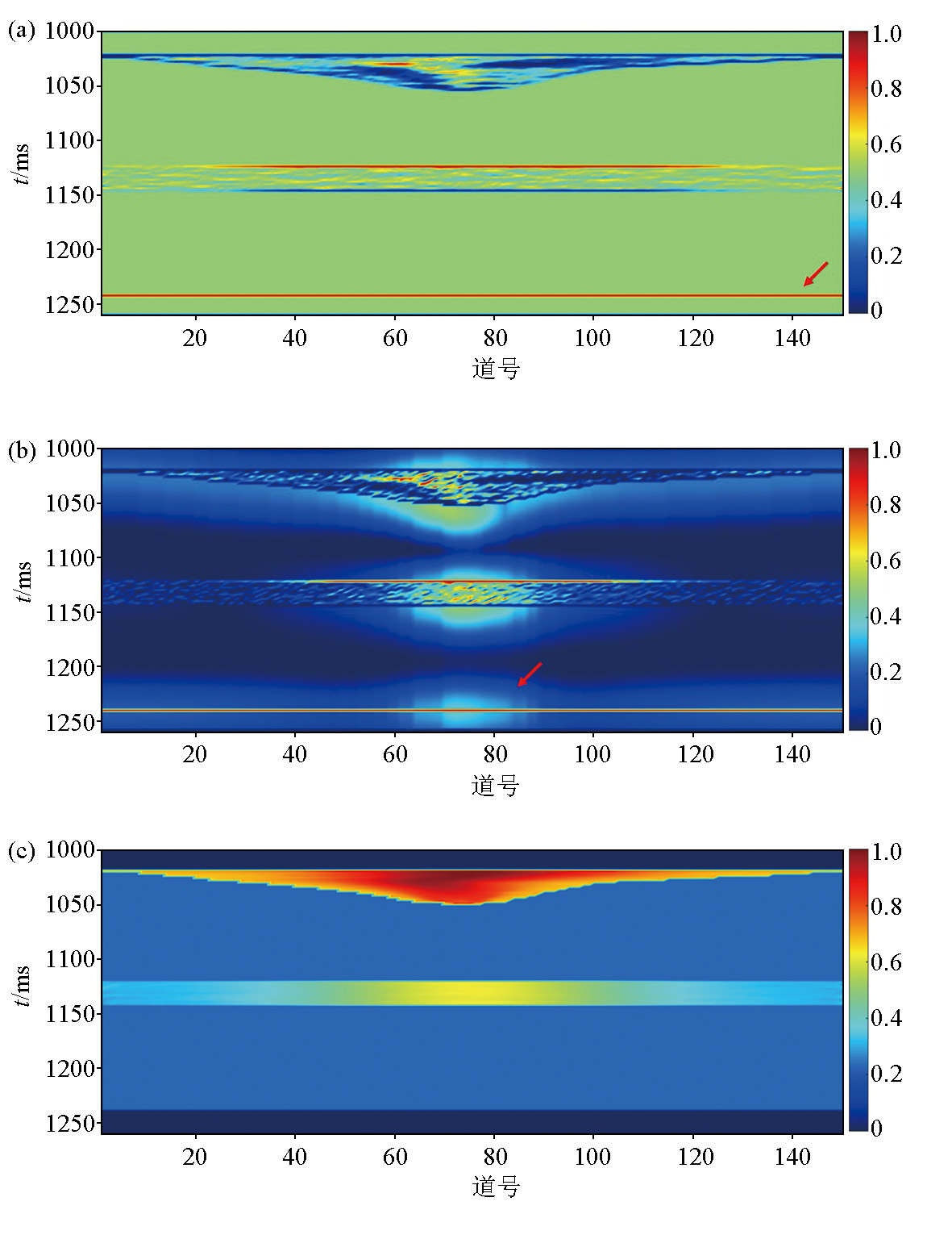 | 图11 单属性结果示意 a—纵波速度差(归一化结果);b—频散因子(归一化结果);c—孔隙结构参数 |