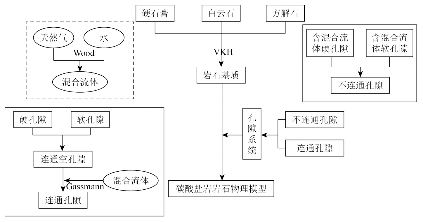 | 图3 考虑连通孔隙与孔隙形状的碳酸盐岩岩石物理模型 |