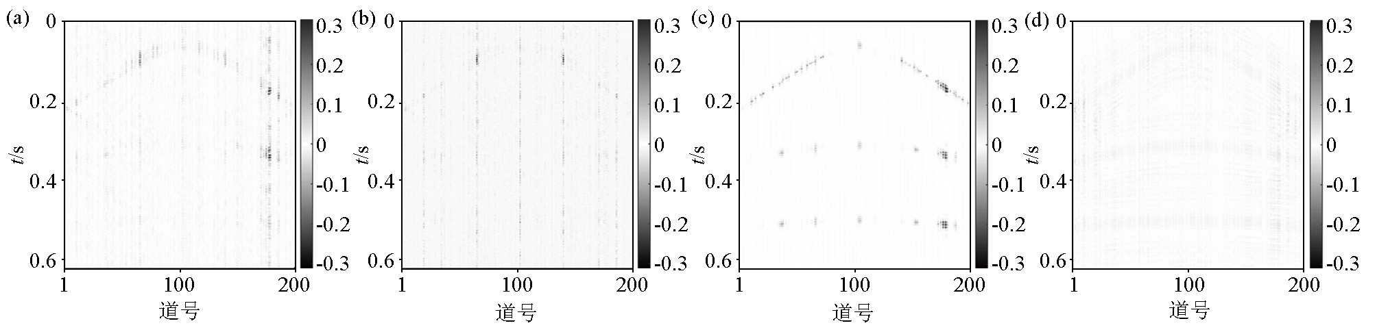 | 图4 4种单一变换的重建误差 a—基于Fourier变换重建误差;b—基于DCT变换的重建误差;c—基于Curvelet变换的重建误差;d—基于Shearlet变换的重建误差 |