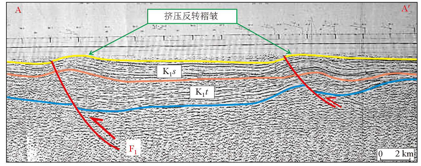 | 图3 塔北凹陷东部A-A'地震剖面反转断层(据鲁超[ |