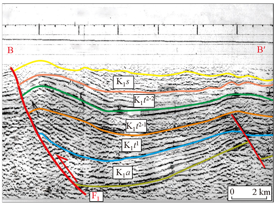 | Fig.4 B-B' seismic profile in the east of Tabei Sag (modified according to Jiao[ |