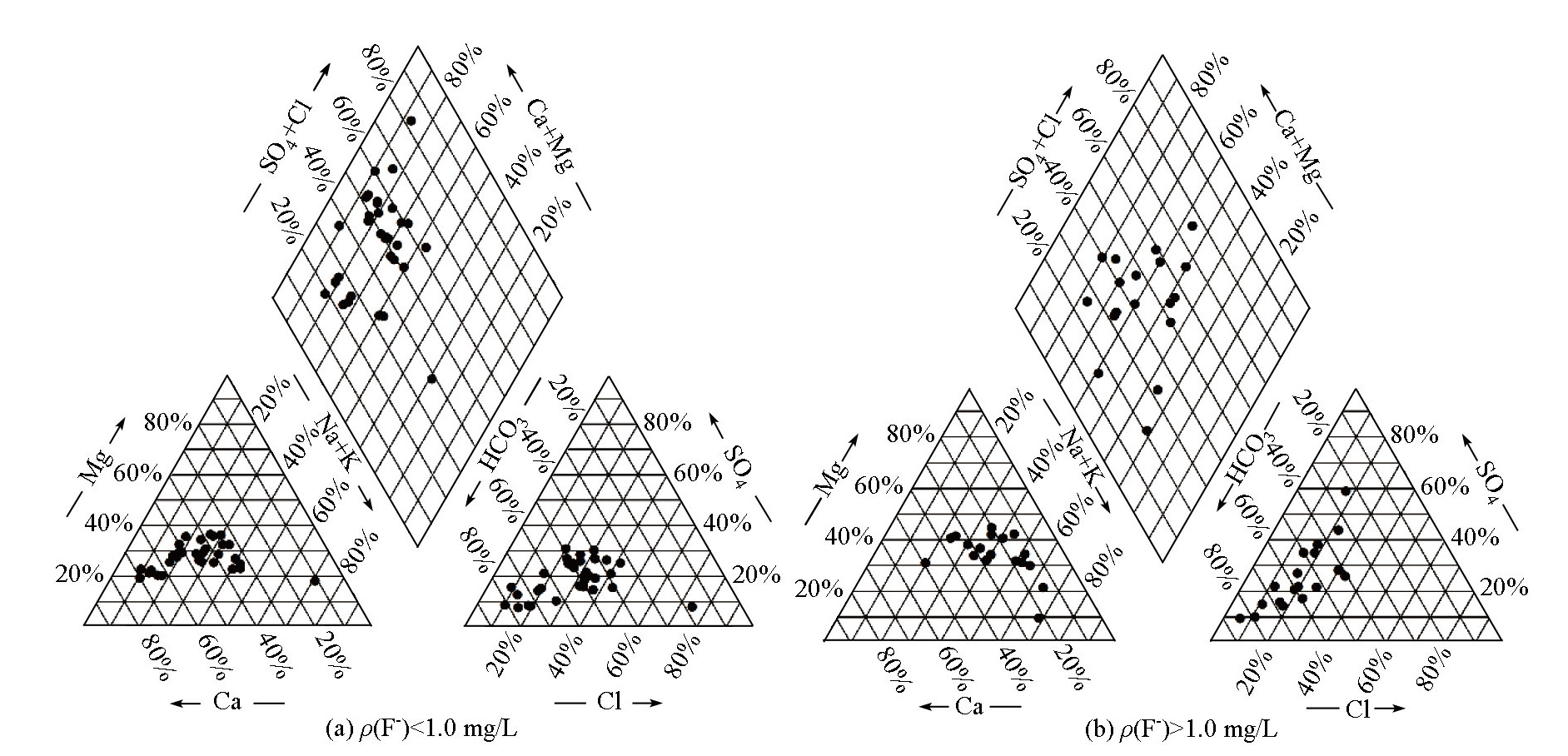 | Fig.2 Piper trilinear diagram of groundwater in the study area |