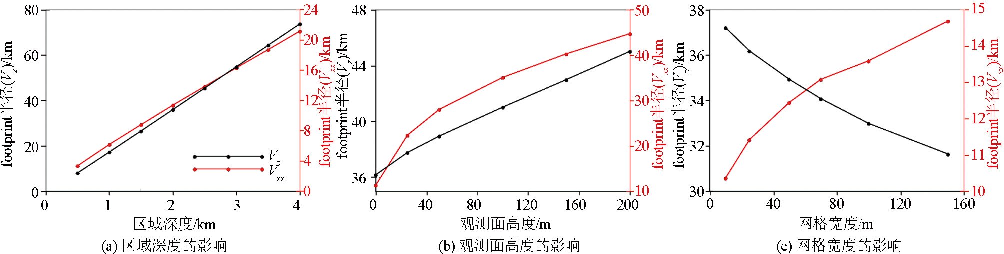 | 图4 位场Vz和Vxx的footprint影响因素分析 |