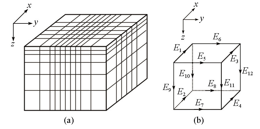 | Fig.2 Domain subdivision of the vector finite element method(according to Nam et al.[ a—domain subdivision;b—location of electric field components |