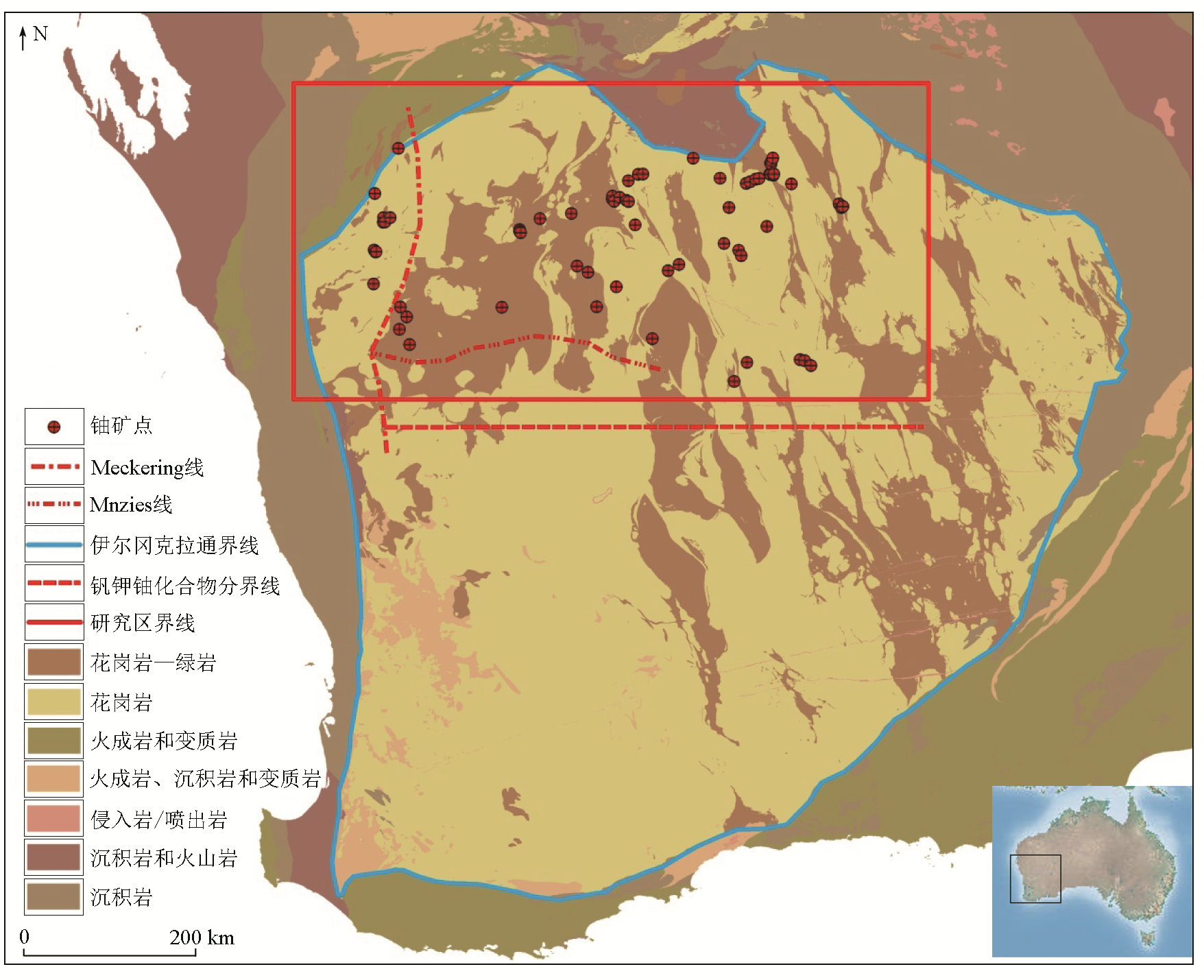 | 图1 伊尔冈克拉通区域地质(据GSWA[ |
