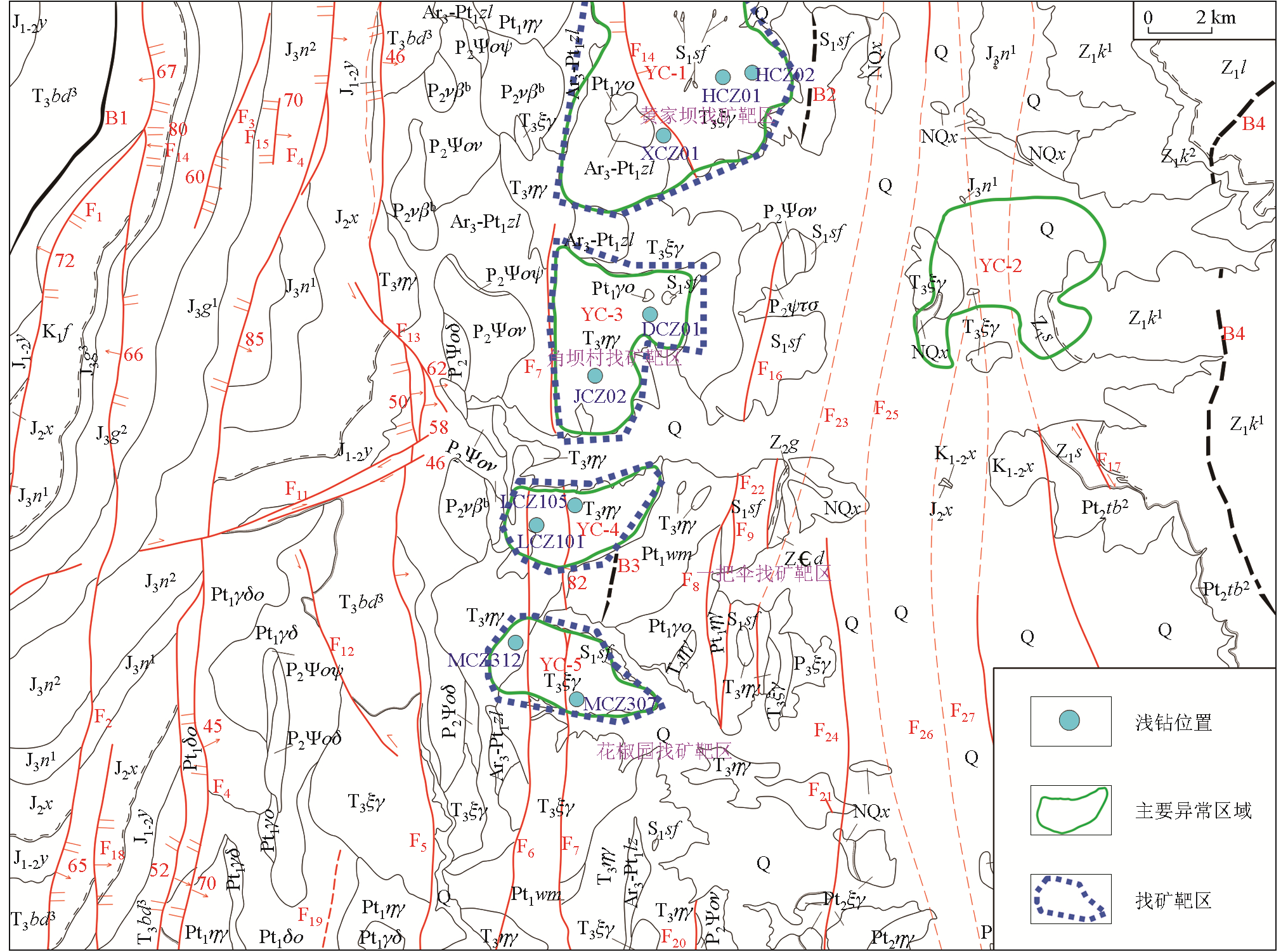 | 图3 德昌地区稀土矿异常及找矿靶区位置 (图例同 |