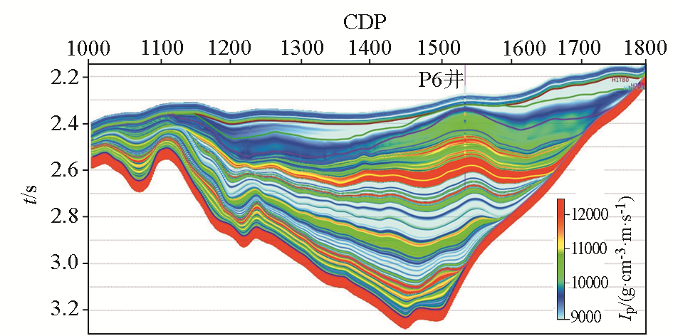 | 图1 过P6井基于地质框架插值的纵波阻抗模型 |
