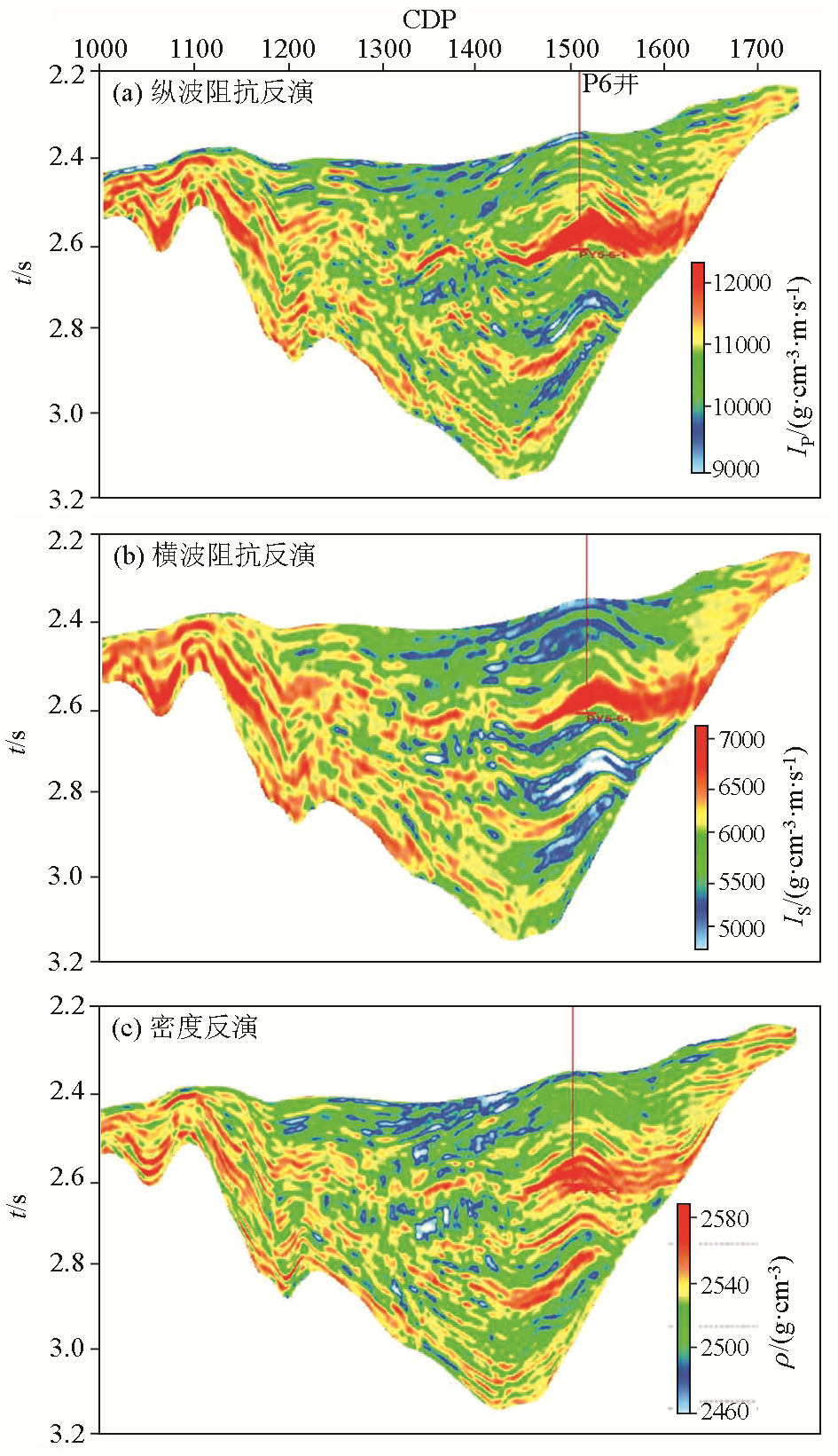 过P6井最终反演剖面