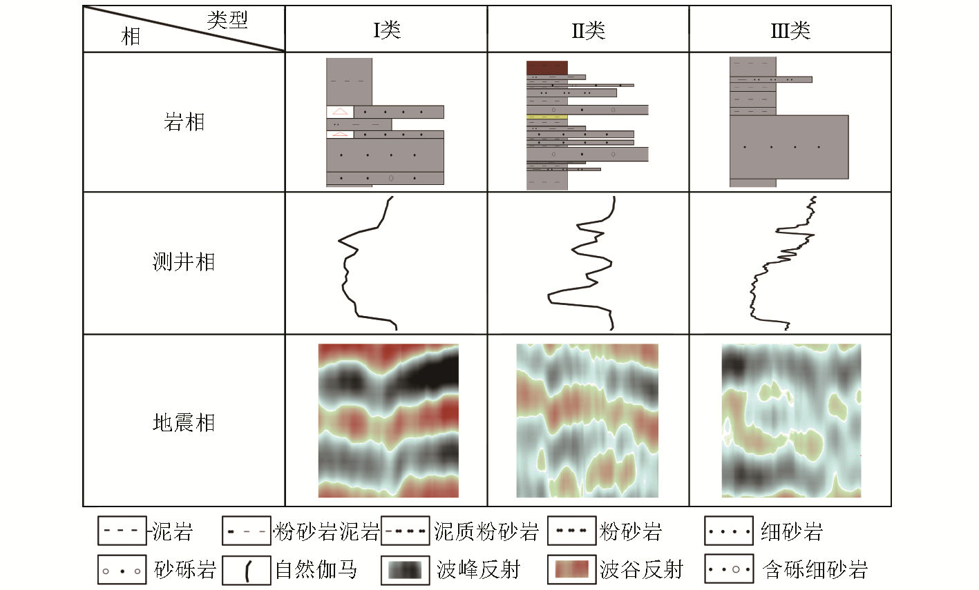 | 图2 TII0小层砂体岩相—测井相—地震相识别图版 |