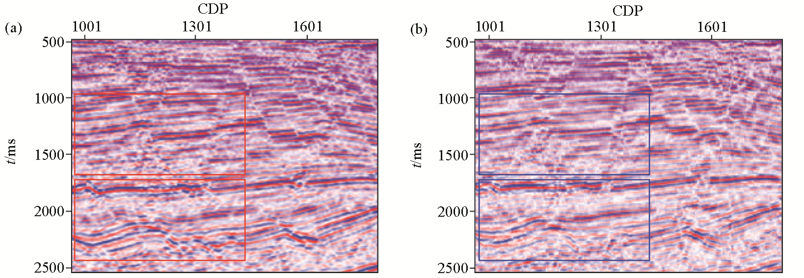 YA三维新(a)、老(b)叠前时间偏移剖面