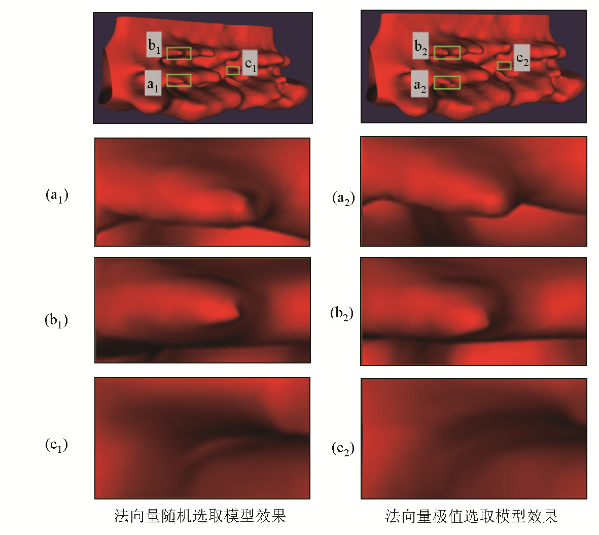 | 图16 法向量随机筛选和极值筛选结果对比 (a~c为局部放大区域) |