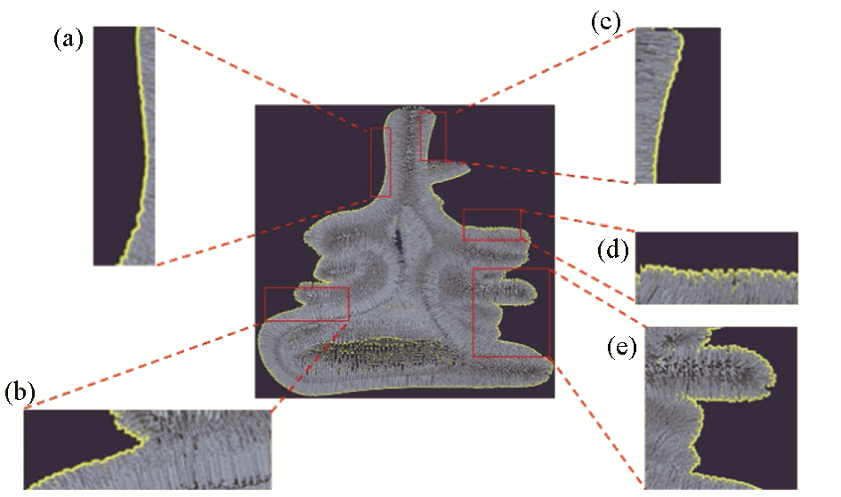 | Fig.9 Corrected normal vector (a~e represent the amplification effect after correcting the normal vector in the corresponding region of |