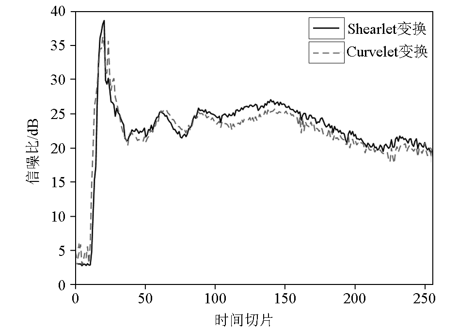 | 图7 Curvelet变换和Shearlet变换重建结果和各时间切片信噪比 |