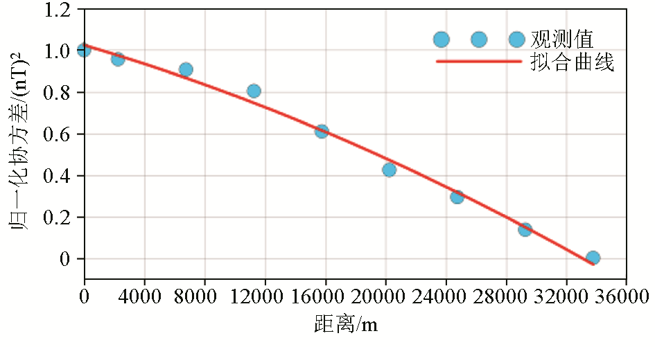 | 图2 计算的观测协方差值及拟合曲线 |