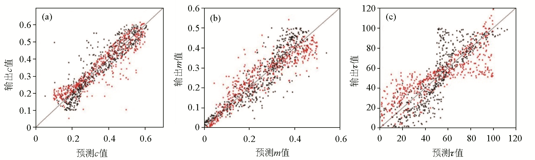 | Fig.7 Spectral parameter regression curve of Model 8-[3 3]-3 structure:(a) Frequency correlation coefficient、(b) charge rate、(c) time constant |