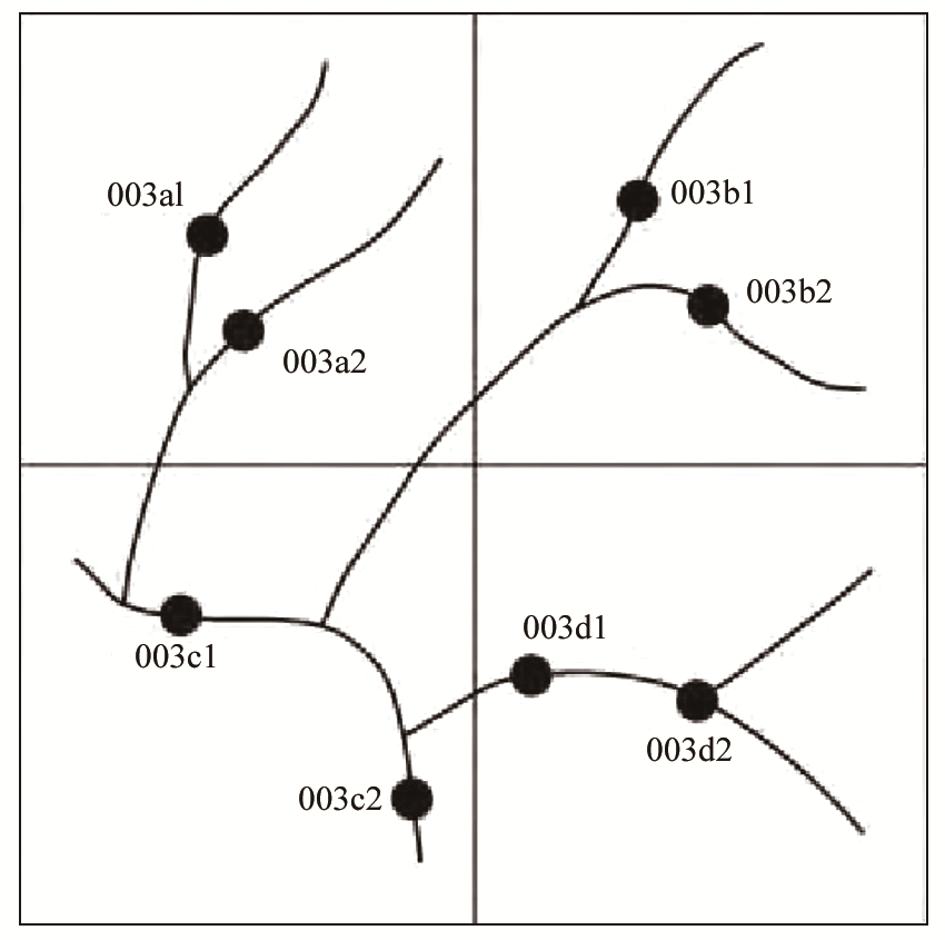 | Fig.1 Schematic diagram of the layout of geochemical sampling points[ |