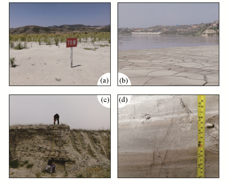 | 图1 邯邢铁矿尾矿照片 a—西石门后井尾矿库; b—北洺河尖山北尾矿库; c—西寺庄尾矿库; d—粗细粒尾矿分层 |