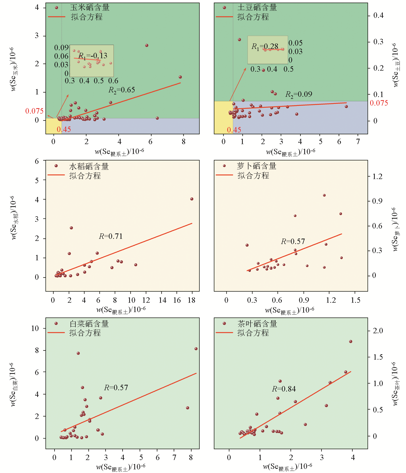 | 图4 新塘乡农作物与根系土硒含量散点图 |