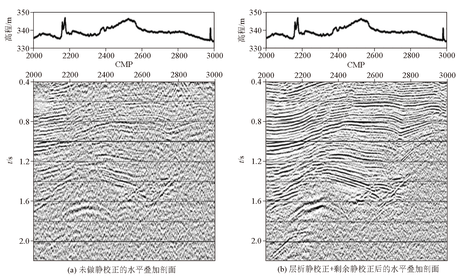 | 图6 测线18静校正处理前(a)后(b)效果对比 |