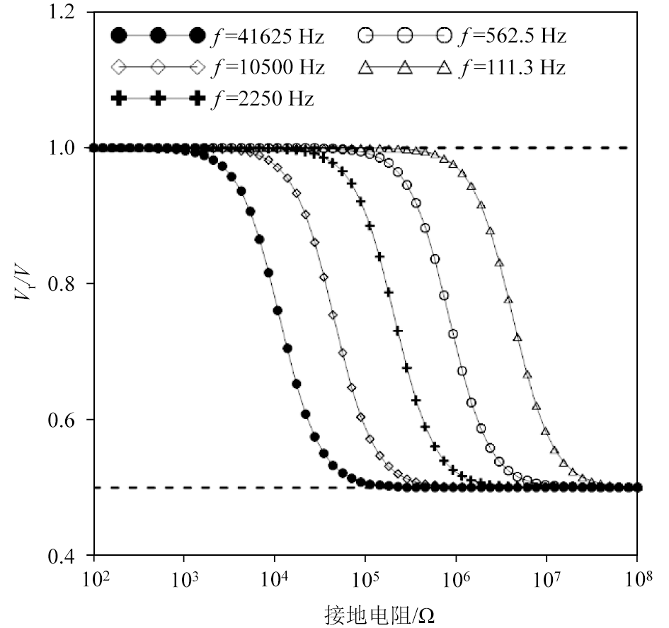 | Fig.2 Diagram of the relationship between electric field amplitude and grounding resistance |