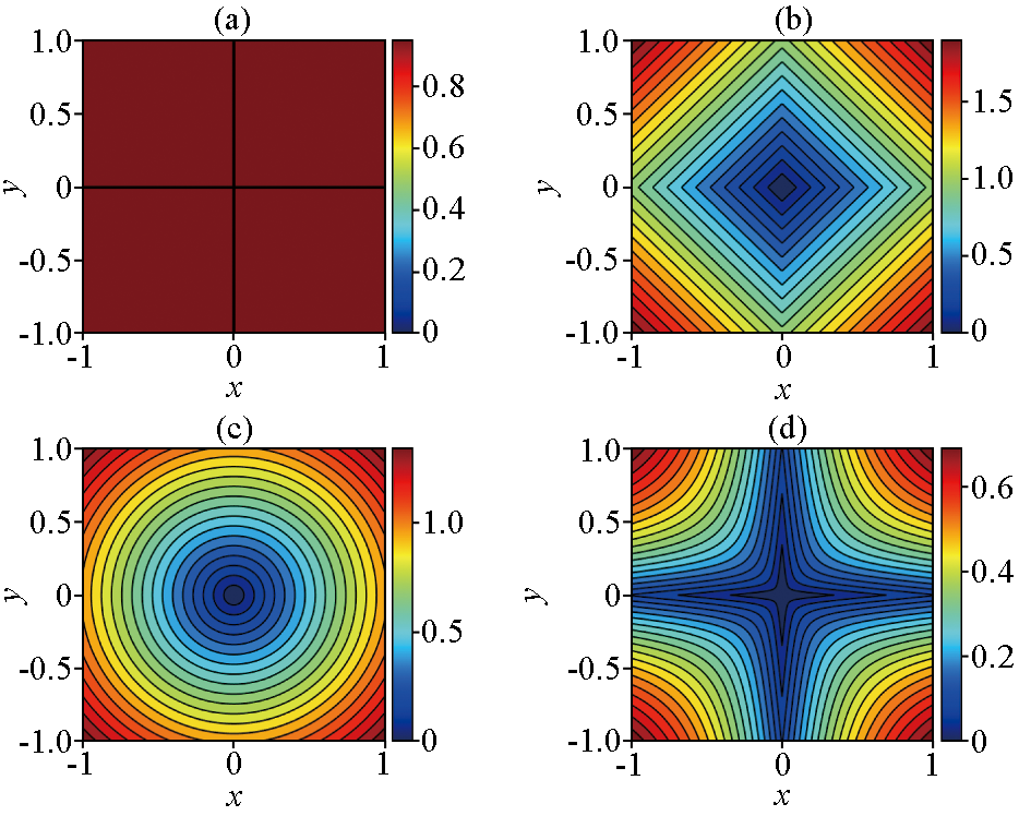| 图6 L0范数(a)、L1范数(b)、L2范数(c)、L1-2范数(d)的二维图像 |