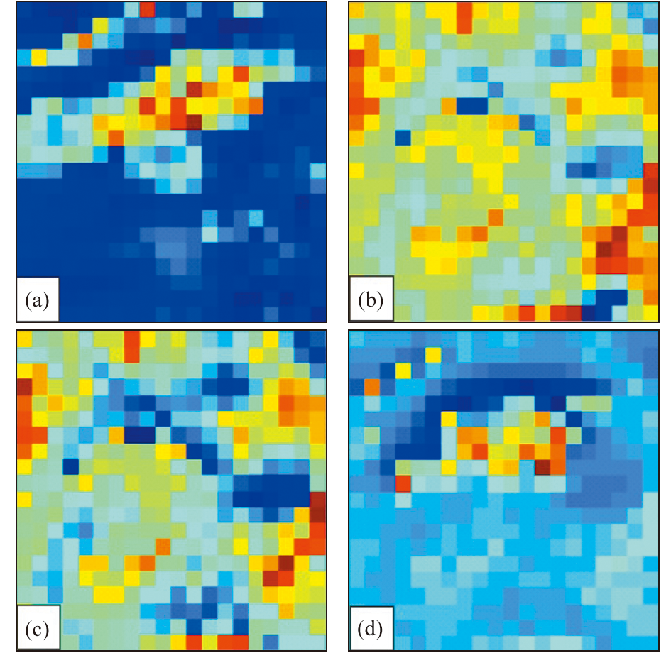 | 图3 航磁正演模拟逐步逼近过程示意 a—实测结果;b、c—经不断调整后的中间正演结果;d—最终正演结果 |