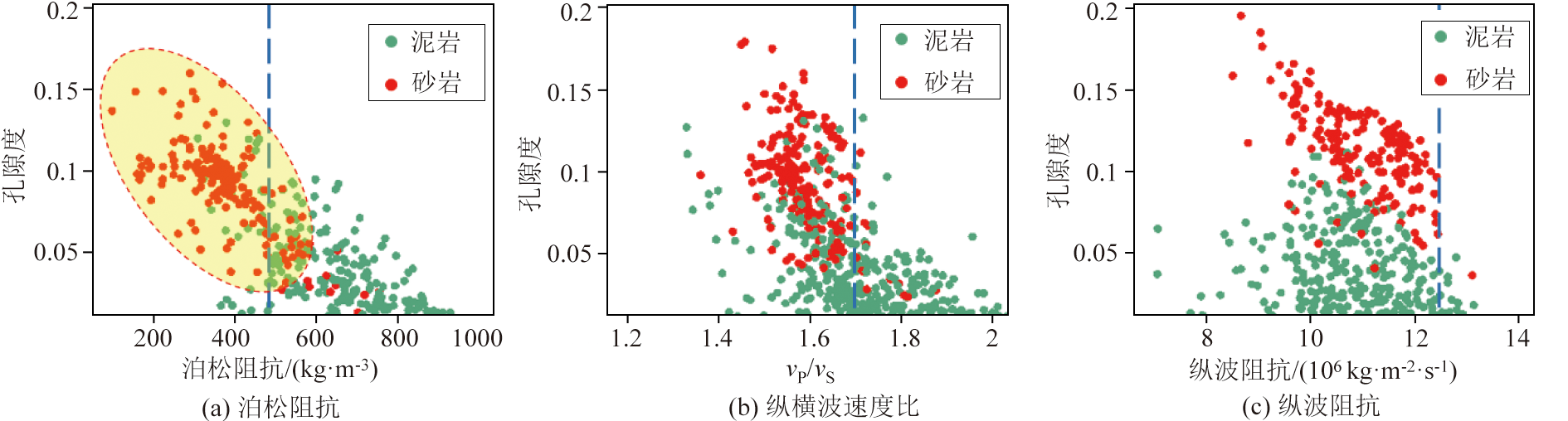 | 图1 复杂砂、泥岩沉积区砂岩敏感参数测井岩石物理交会图 |