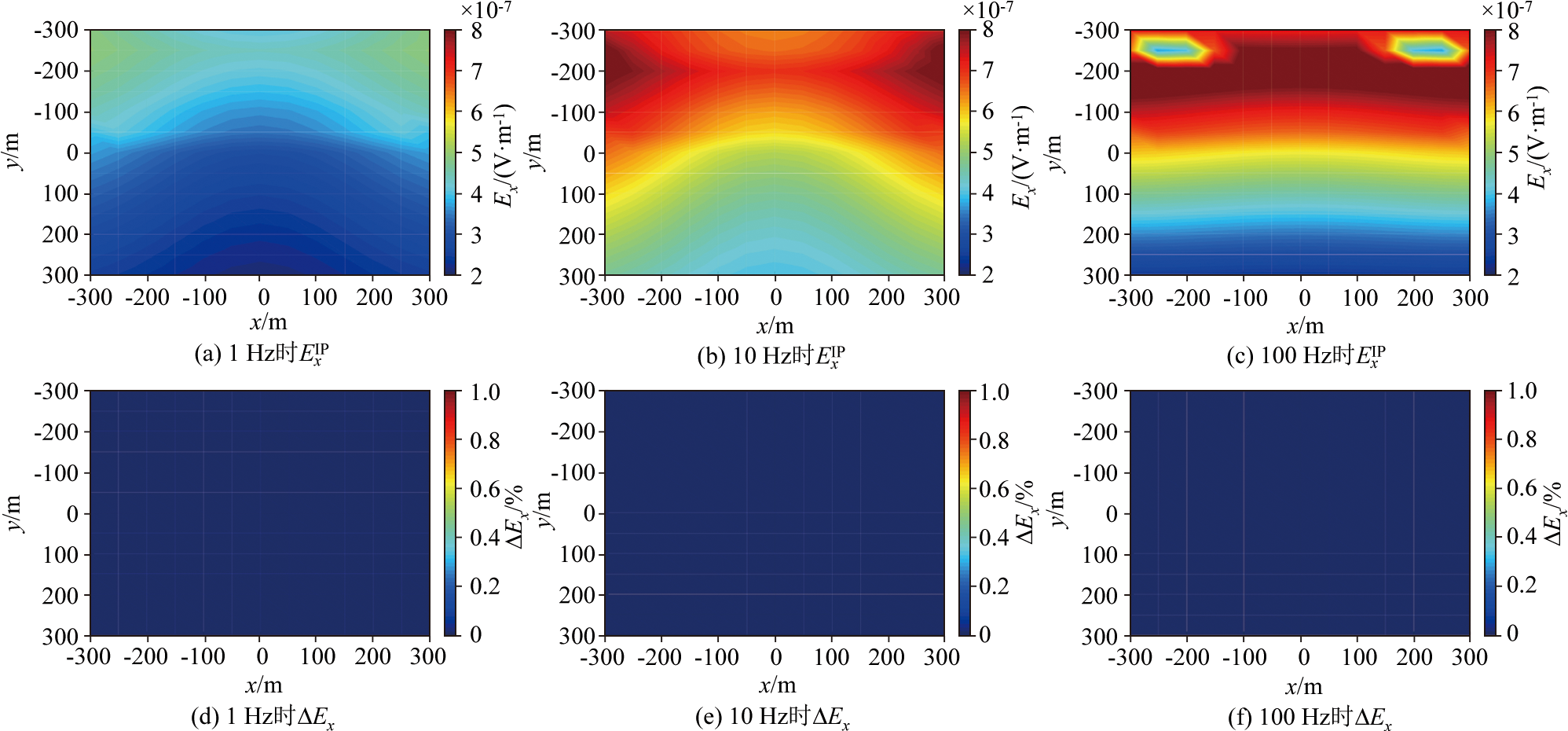 | 图4 含激电矿体模型的不同频率电场幅值 |