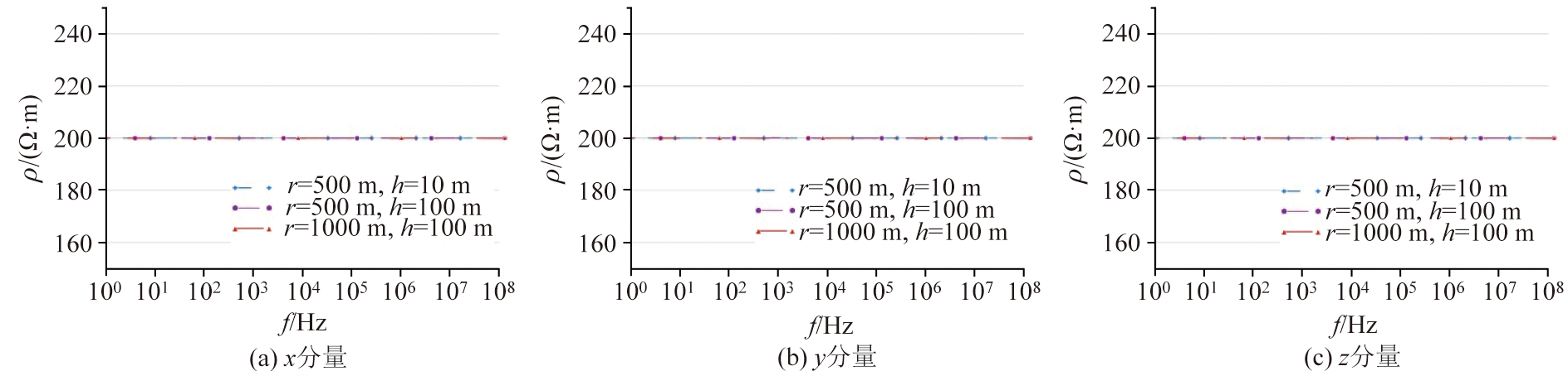 | 图6 均匀半空间不同偏移距r、不同飞行高度h磁场各分量全域视电阻率 |