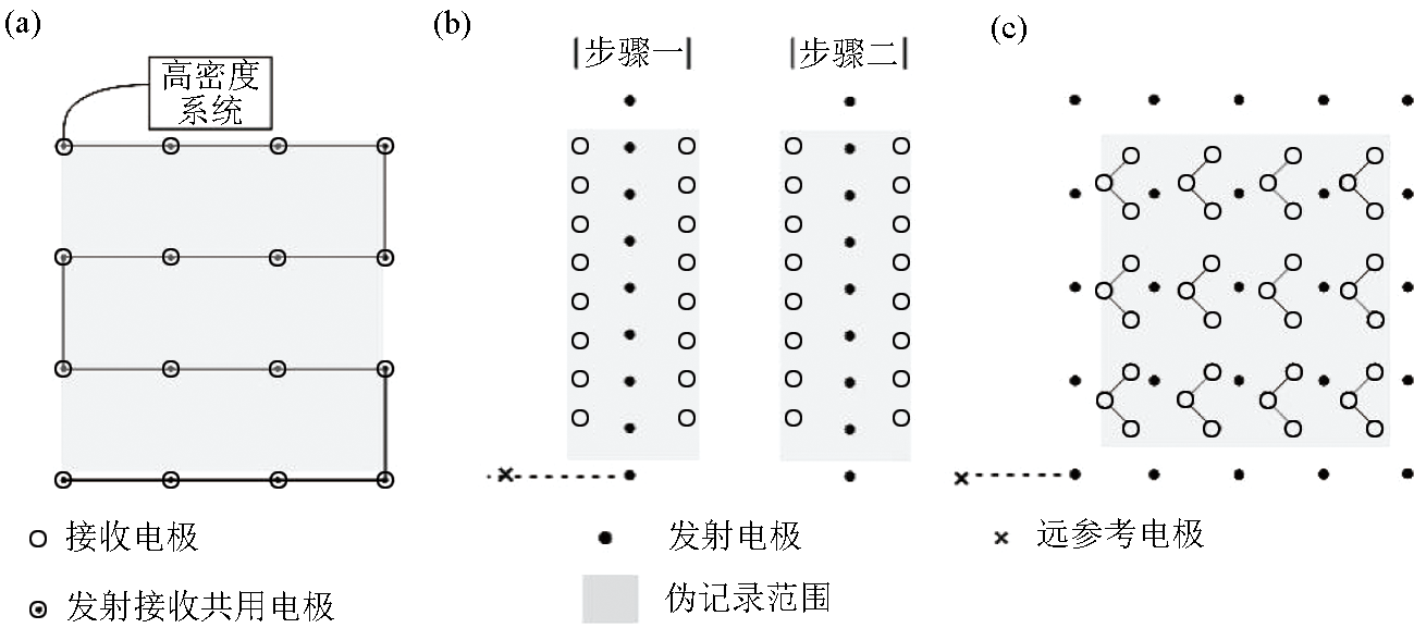 | 图2 不同三维观测装置的示意 a—使用多芯电缆的多分支布局的S形电极排列[ |