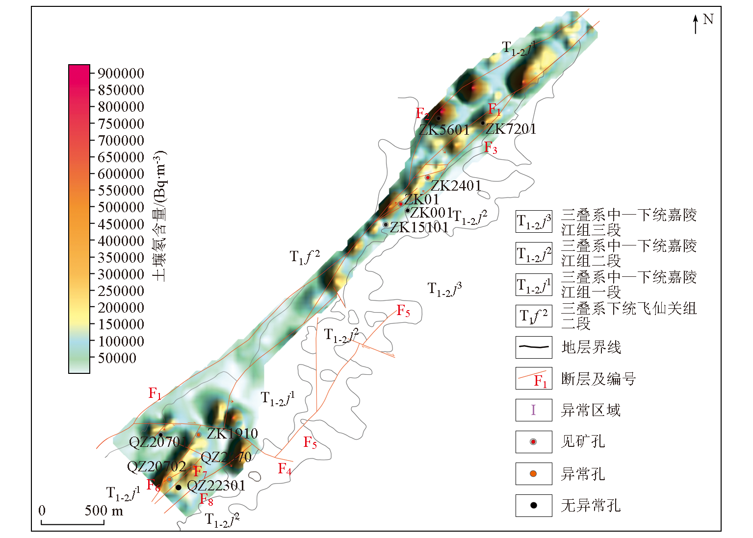 | 图4 土壤氡气含量分布 |