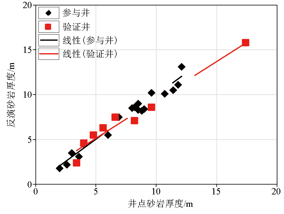 | 图7 反演预测砂岩厚度与井点砂岩厚度交会 |