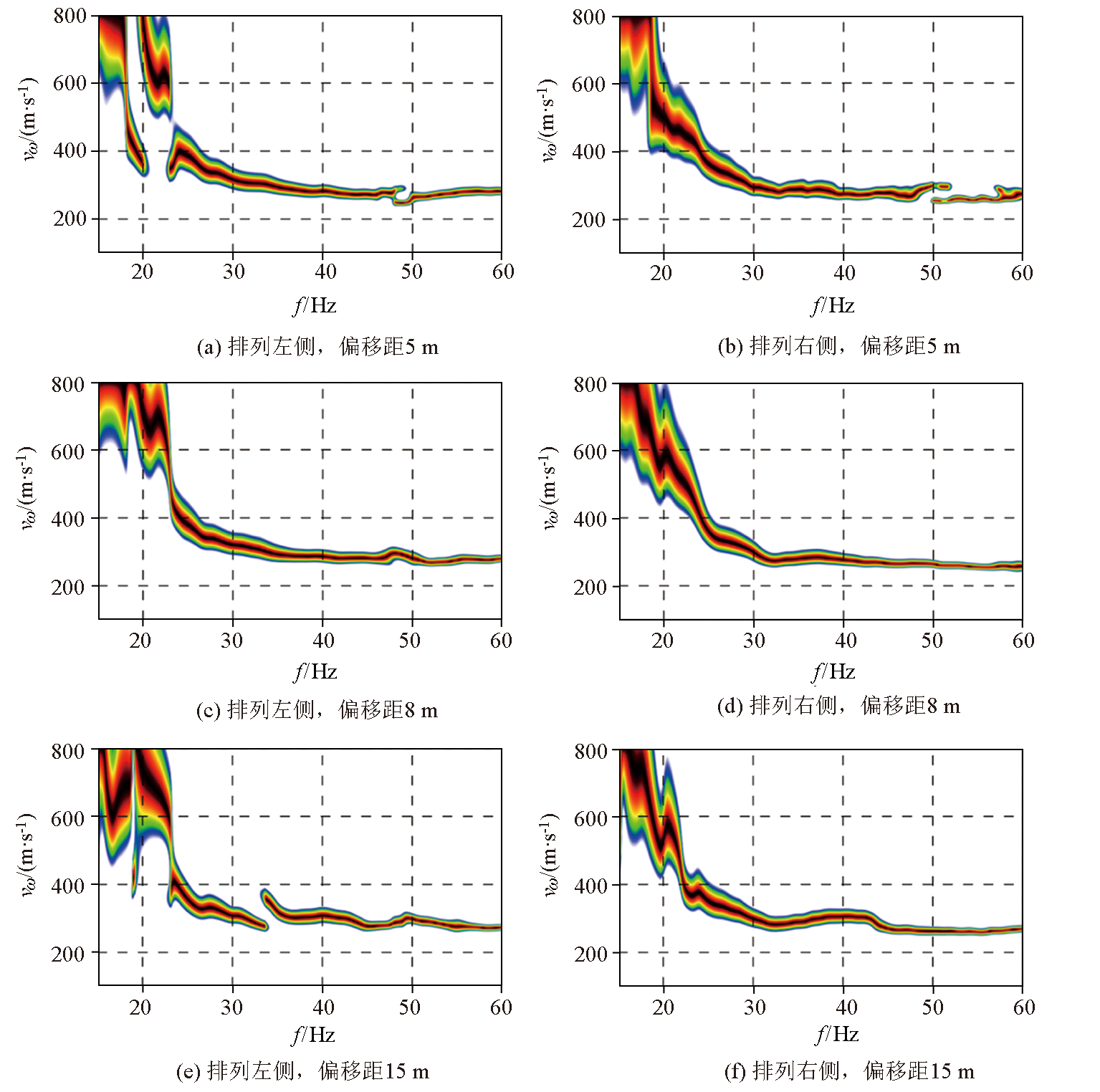| 图6 不同偏移距计算得到频散谱(16磅锤) |