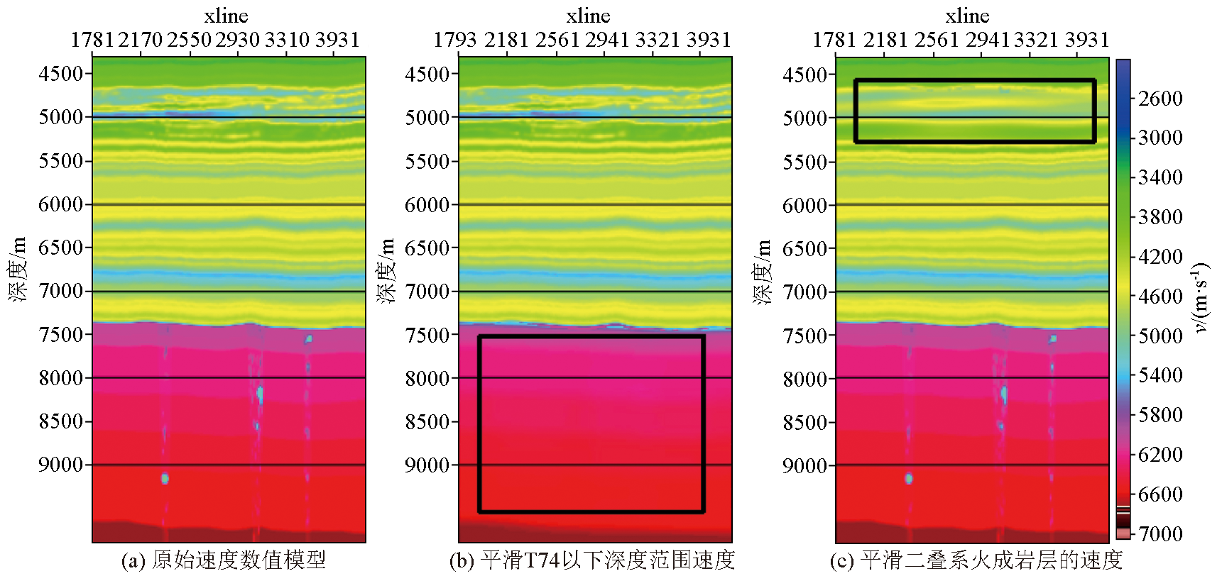 | 图4 不同层系速度模型平滑剖面 |