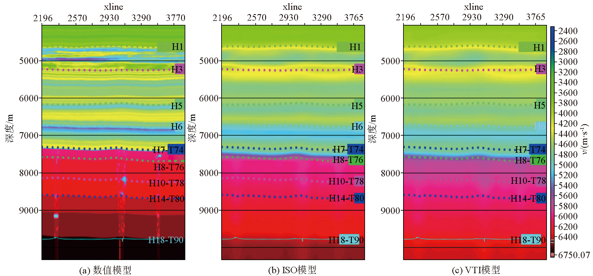 | 图6 不同速度模型对应的层位匹配对比剖面 |