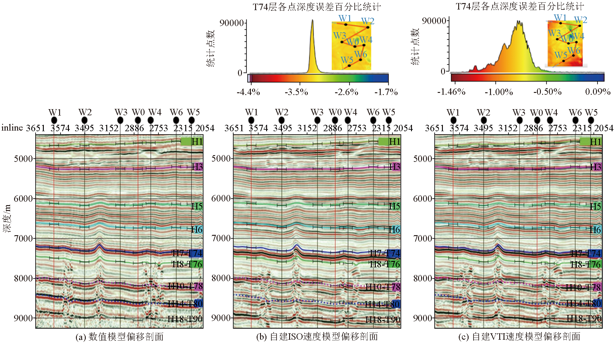 | 图9 不同速度模型所对应的RTM连井线偏移剖面 |