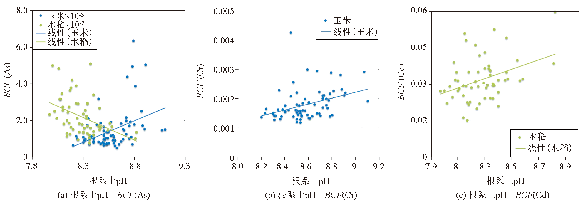 | 图3 农作物重金属富集系数同根系土pH值散点图 |