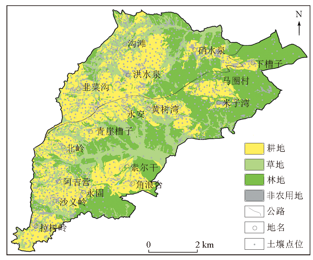 | 图1 研究区土地利用类型及土壤点位示意 |