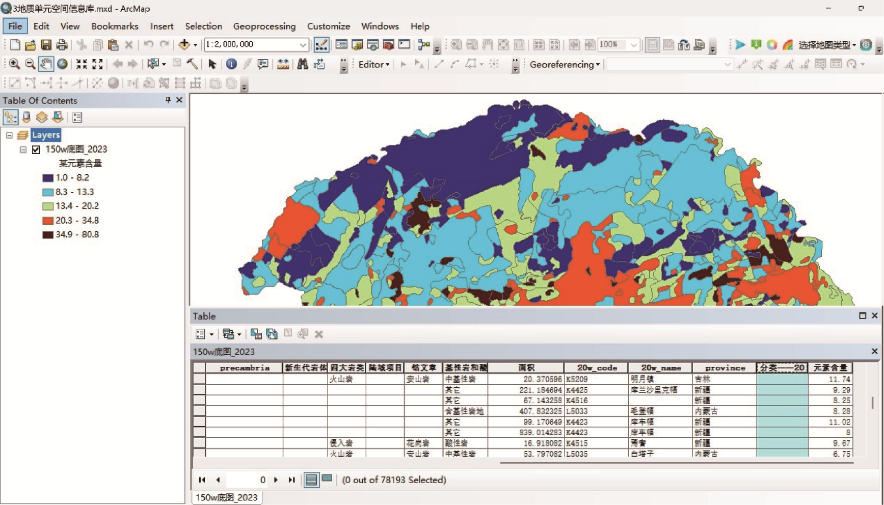 | Fig.7 GIS representation of spatial distribution and chemical composition of geological units |
