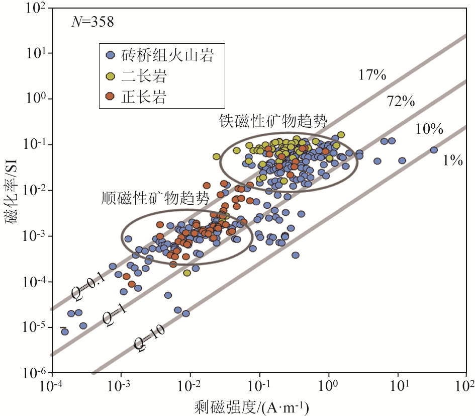 | 图4 磁性双变量(磁化率及剩磁强度)与Q值分布散点 |