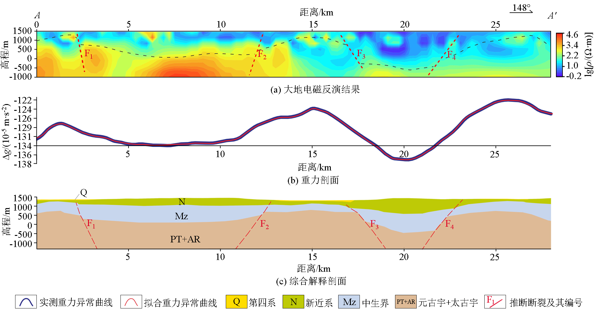 | 图4 重力—大地电磁联合反演综合地质解释成果 |