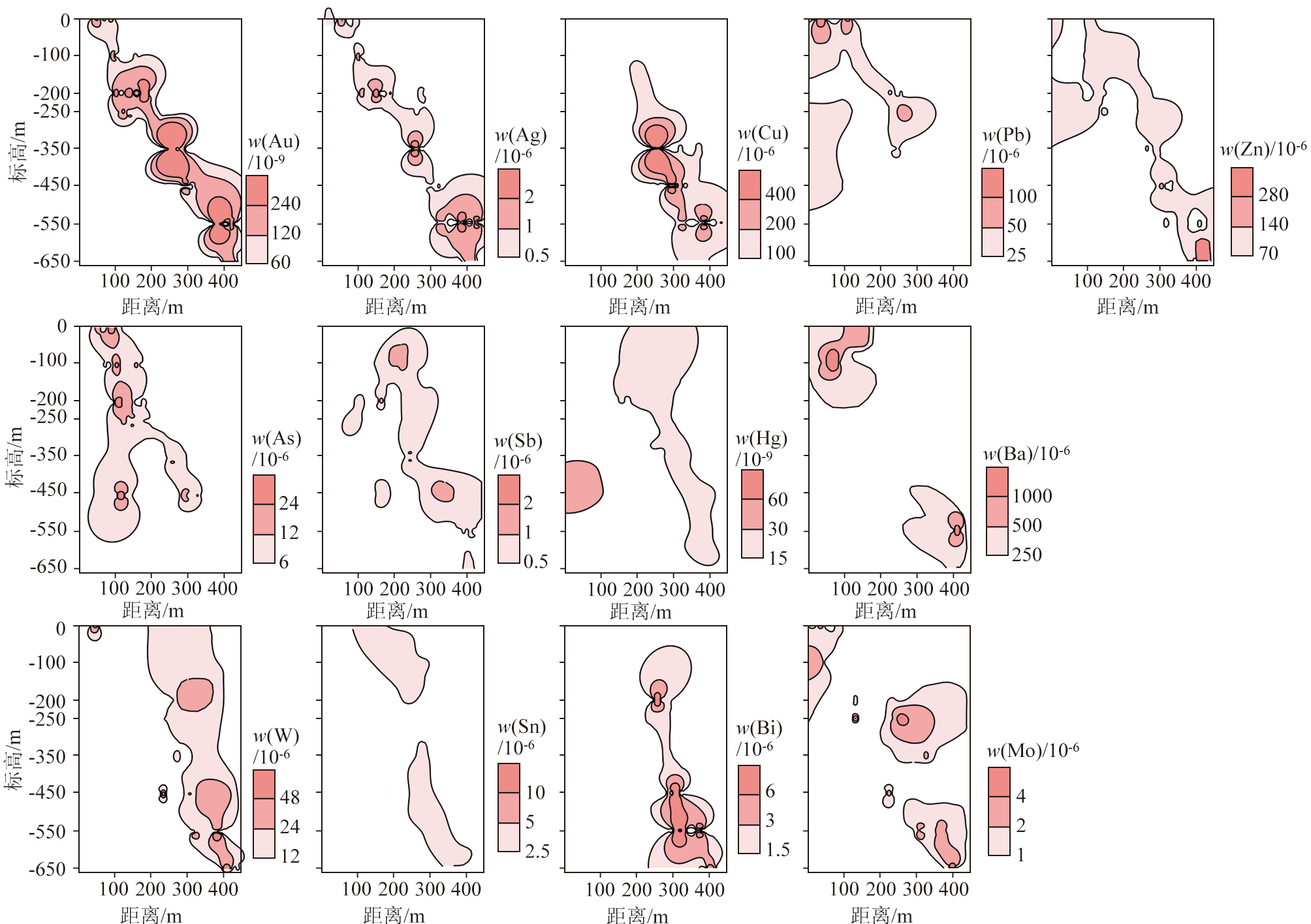 | Fig.7 Elemental anomaly analysis of exploration line 304 of ore body No. 59 in Laowan gold deposit |