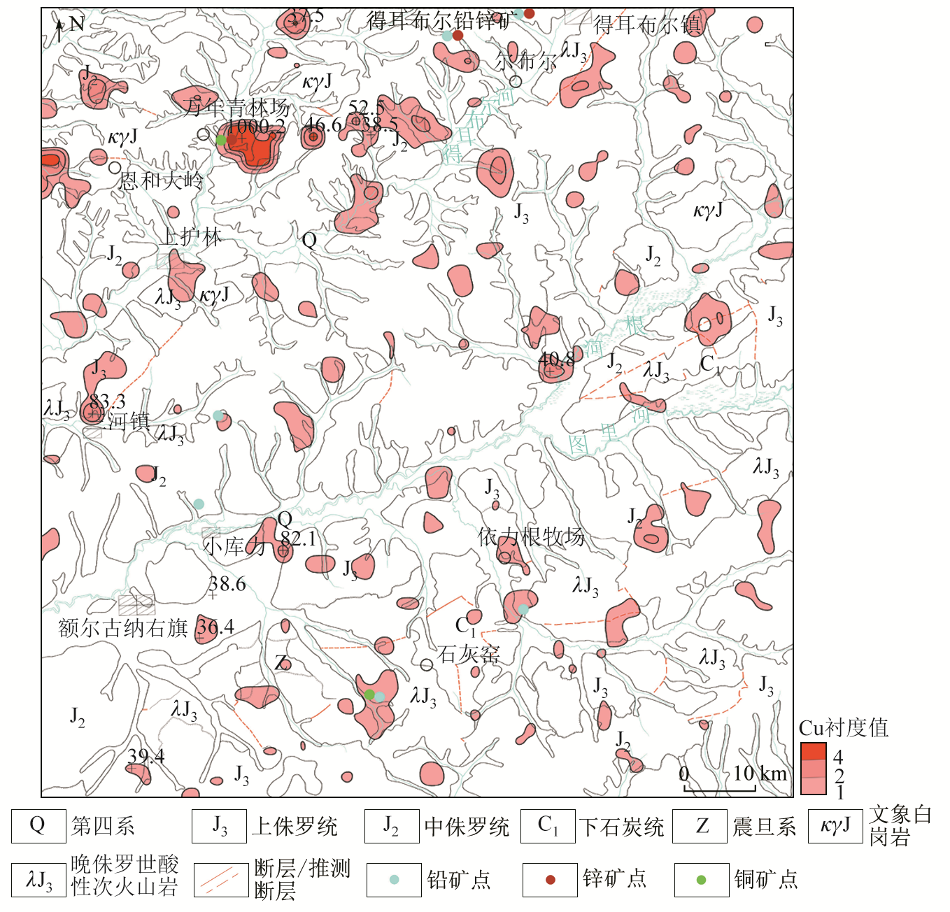 | Fig.7 Copper anomaly distribution(hollow tiny subregion method) |