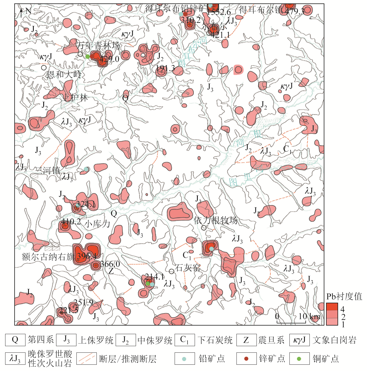 | 图8 Pb异常分布(空心微子区法) |