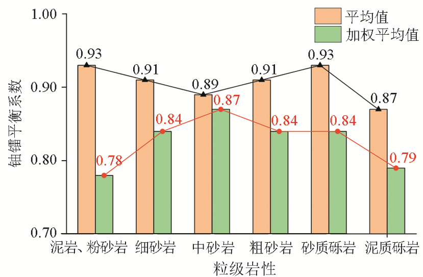 | 图7 铀镭平衡系数与粒级岩性变化关系 |