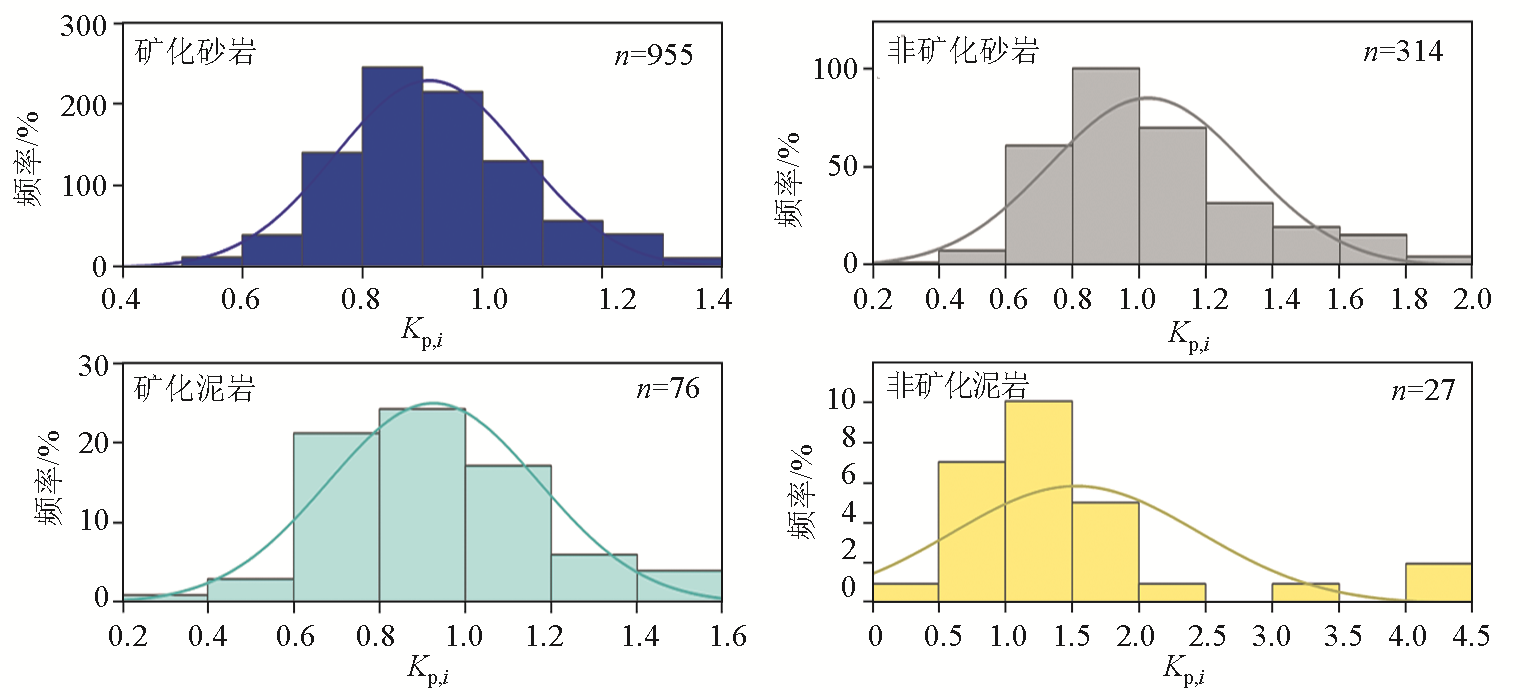| 图8 不同矿化类型岩石铀镭平衡系数频率分布 |